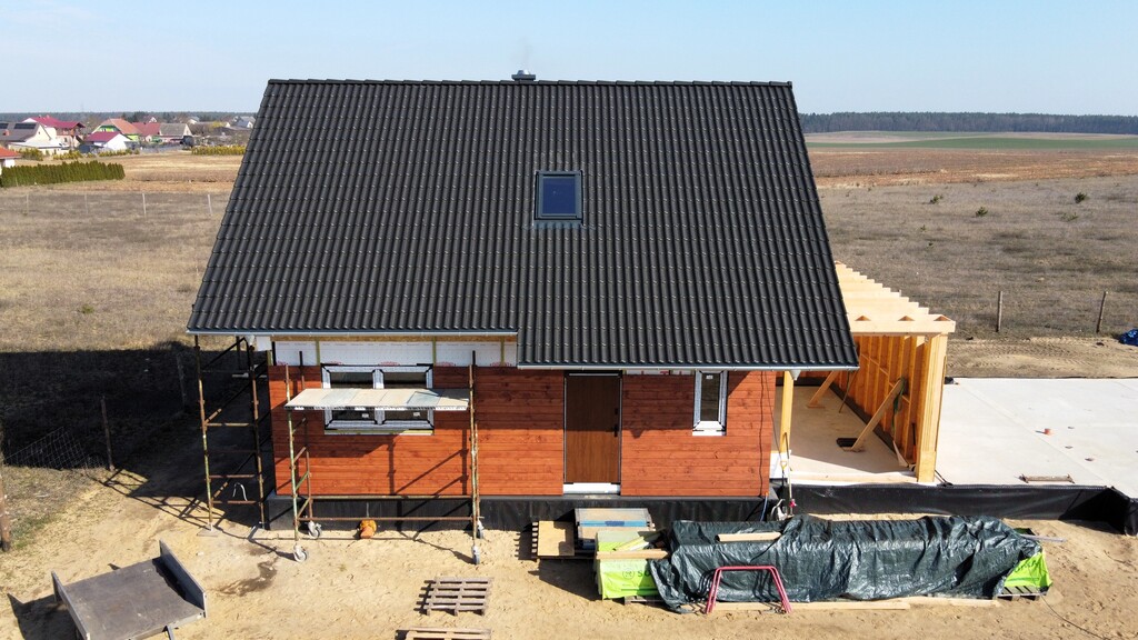 O Twoje niskie koszty eksploatacji zadba 20-centymetrowa warstwa izolacyjna ścian zewnętrznych o bardzo niskim współczynniku przenikania ciepła (lambda 0,33). Dopełnieniem wysokiej jakości materiałów jest trwała i elegancka dachówka marki Braas, pokrywająca część mieszkalną.
